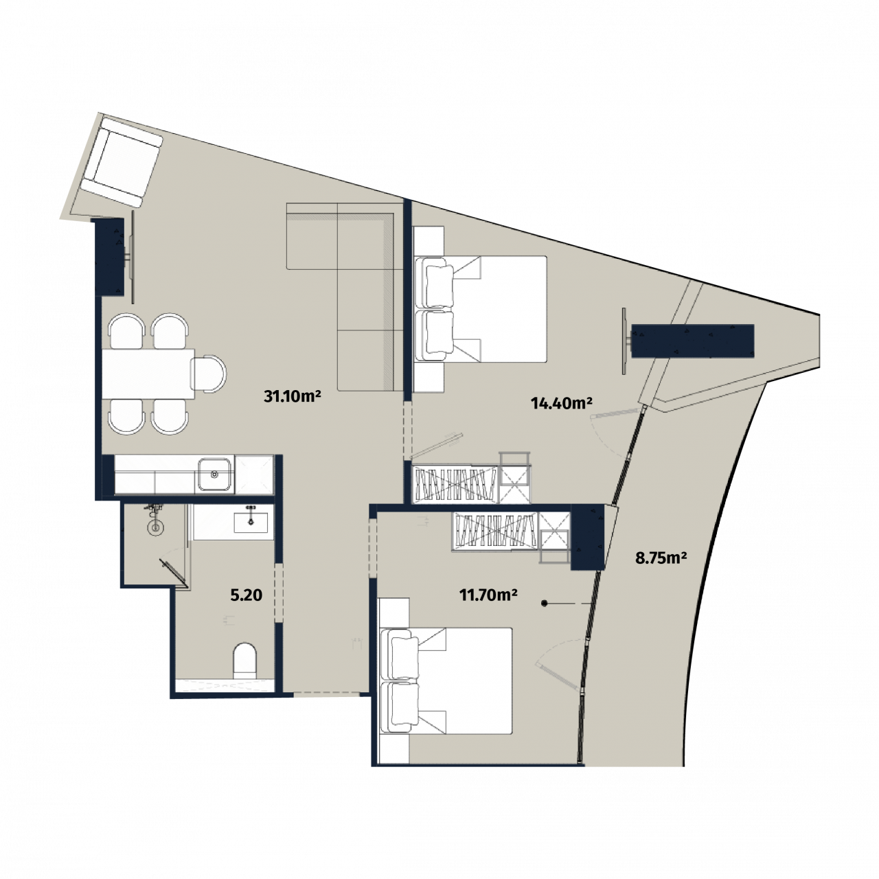 2-bedroom apartment, 71.15 m², 45 floor, Alliance Centropolis in Batumi