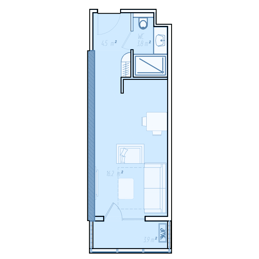 If it is not possible to determine the required number of rooms, then it is worth paying attention to the area of housing. In the BlueSky Tower complex, you can buy an apartment with an area of 35 m2 to 170 m2.