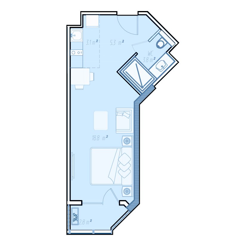 The BlueSky Tower complex offers various apartment options, among which you can choose the most suitable one. If you are looking for a studio apartment, then in this complex you will find many offers. Also, for those who need more space, BlueSky Tower has two- and three-bedroom apartments.