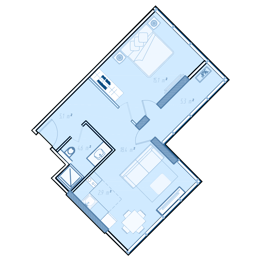 By purchasing a house in BlueSky Tower, you can be sure of the high quality of construction and full compliance with the contract. The complex is in a good location, close to many shops, restaurants and entertainment venues.