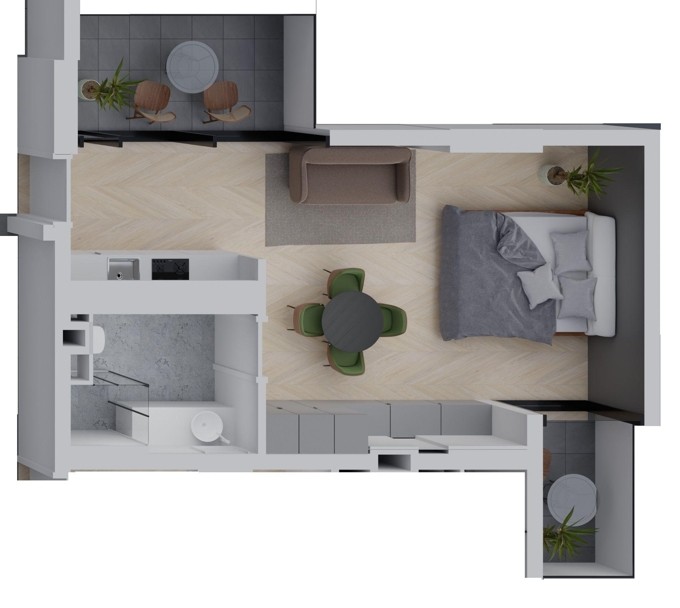 Three-bedroom Dream Side apartments are ideal for large families and people who need a large living space. These apartments have spacious rooms, two bathrooms and a kitchen-living room.