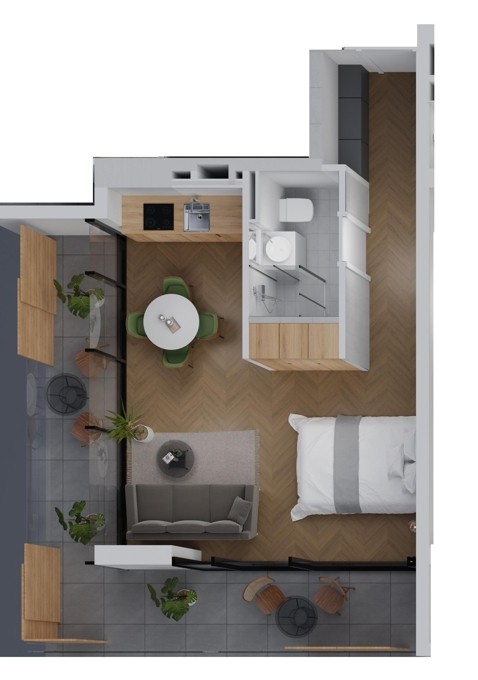 Buying a studio apartment in Dream Side is a great choice for single people and young couples without children. Such apartments are cozy and practical, have a small area and a spacious kitchen-living room.