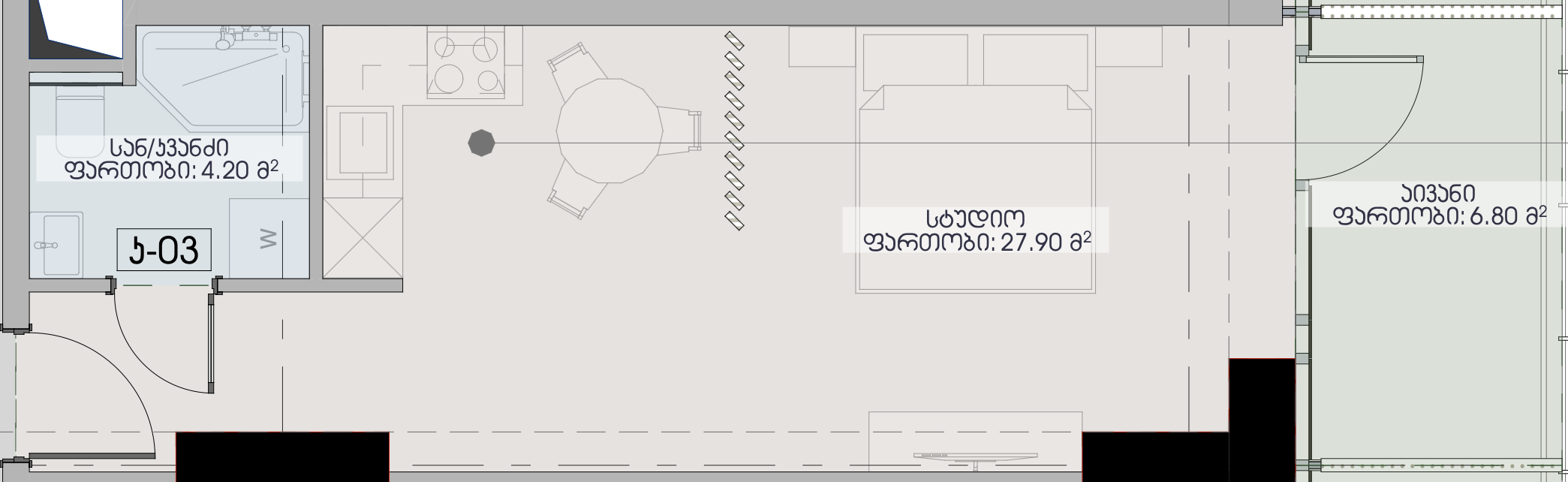 - 1-room apartments: