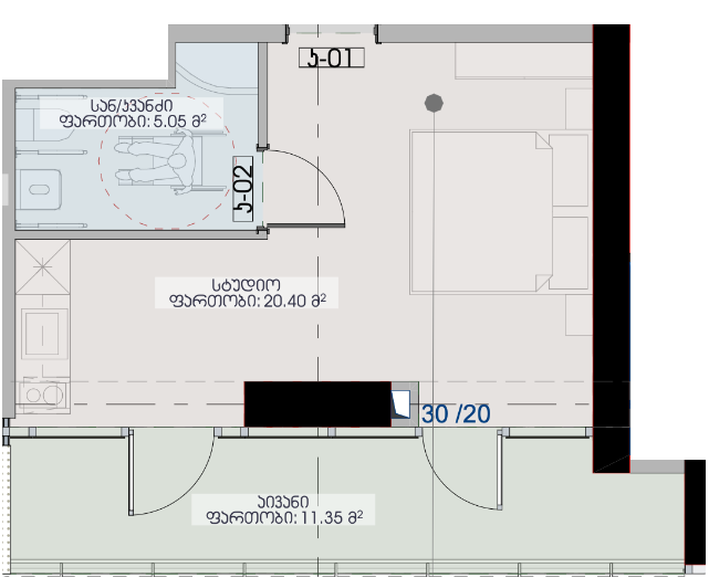 studio, 36.8 m², 17 floor, Geuz Towers in Batumi