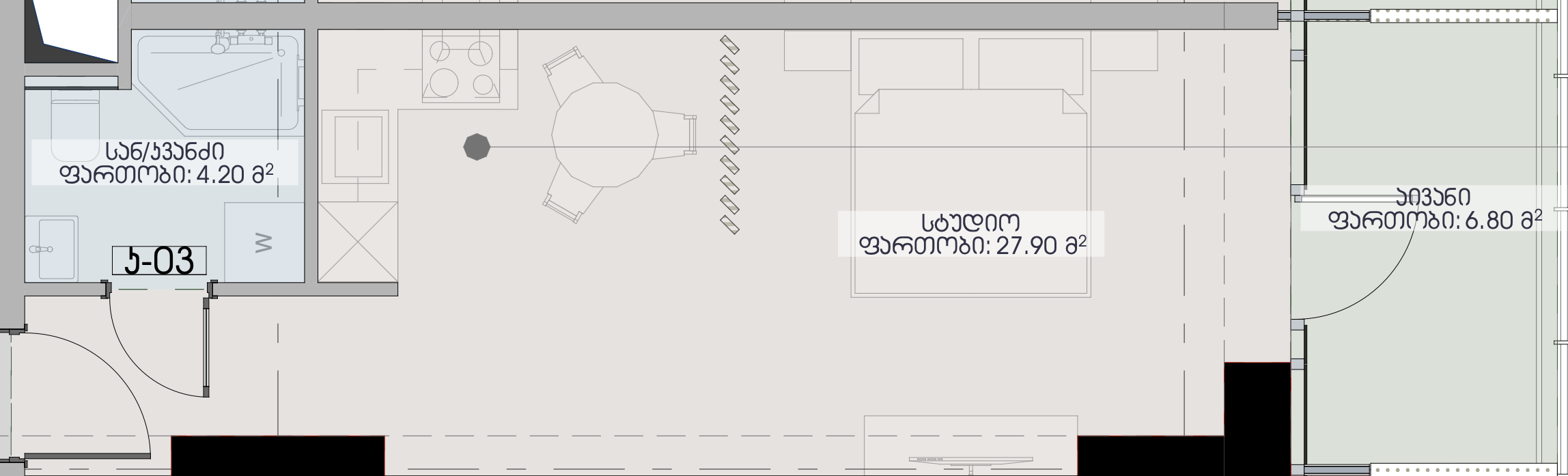 studio, 38.9 m², 19 floor, Geuz Towers in Batumi