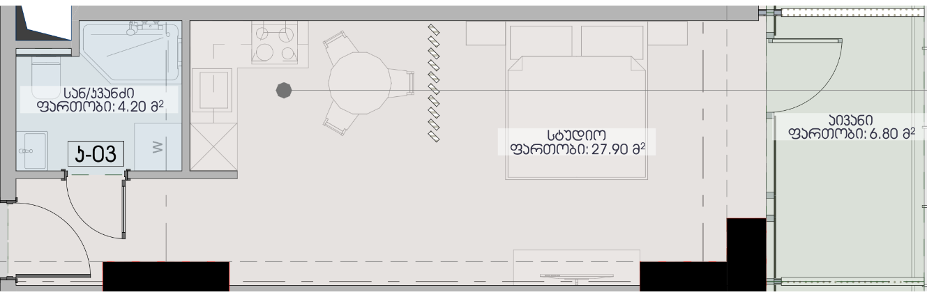 studio, 38.9 m², 20 floor, Geuz Towers in Batumi