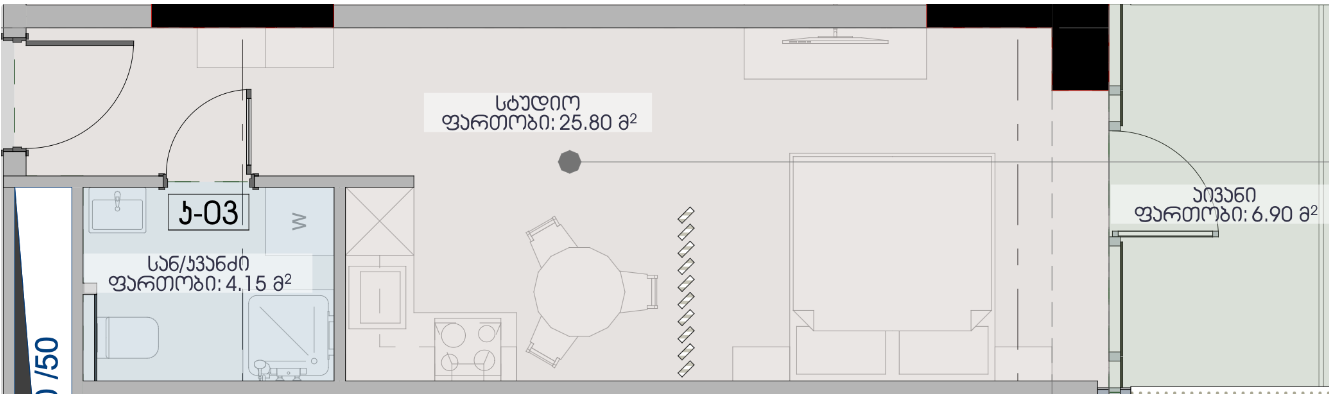 studio, 36.85 m², 23 floor, Geuz Towers in Batumi