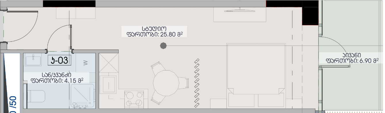 studio, 36.85 m², 26 floor, Geuz Towers in Batumi
