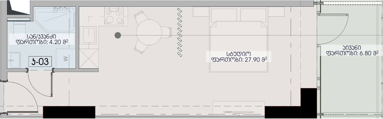 studio, 38.9 m², 31 floor, Geuz Towers in Batumi