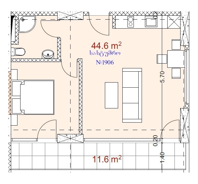 1-bedroom apartment, 56.2 m², 19 floor, Green Side Gonio in Batumi