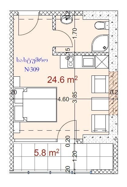 studio, 30.4 m², 3 floor, Green Side Gonio in Batumi