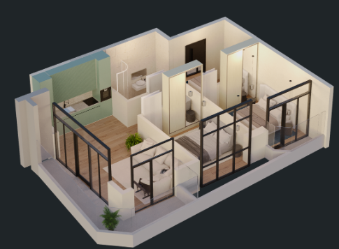 Green Side Gonio offers a wide range of apartment types, including studios, one-, two-, and three-bedroom apartments, as well as duplexes. All apartments are delivered with high-quality finishes and are ready for immediate occupancy.