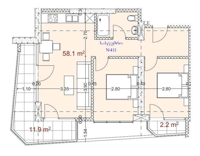 2-bedroom apartment, 72.2 m², 6 floor, Green Side Gonio in Batumi