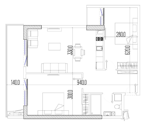 The room layout in Intourist Residence is presented in the form of various options - from one-room apartments to three-room apartments. If you need more space or you are looking for an apartment for a large family, then you can buy a two-room apartment or even buy a 3 apartment in Intourist Residence.