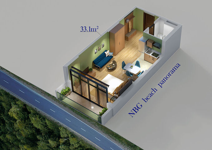 Apartments in the NBG Beach Panorama complex can be chosen from various areas and the number of rooms. You can buy one-room apartments, two-room, three-room apartments, as well as apartments with large areas.
