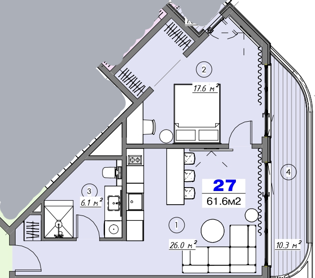 If you have a large family or you plan to receive guests, then Royal Residence Botanico apartments with three rooms or more may be an ideal option. There are also options with two bathrooms, which makes life in the apartment more comfortable.