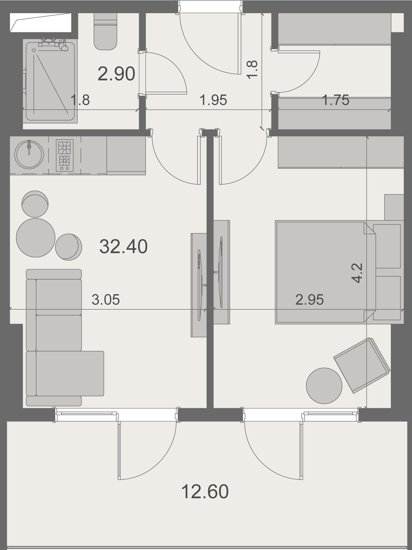 - 1-room apartments: