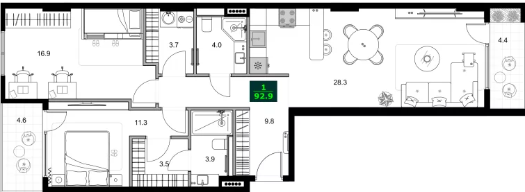 3-bedroom apartment, 92.9 m², 3 floor, SUMMER 365 in Batumi