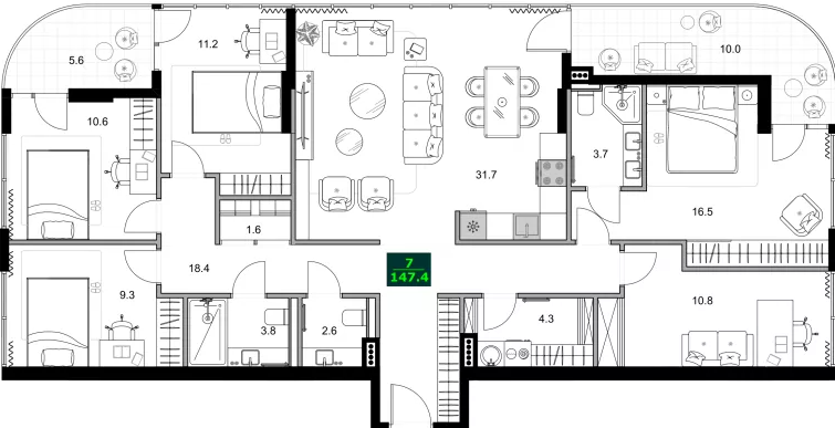 4-bedroom apartment, 147.4 m², 3 floor, SUMMER 365 in Batumi