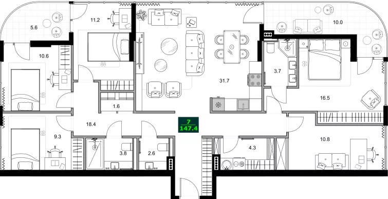 The development offers a range of amenities aimed at enhancing the quality of life for its residents. These include four heated swimming pools, a fitness center, yoga and dance studios, gymnastics halls, and various workout areas around the complex. Safety is a top priority, with 24/7 video surveillance, high-speed OTIS elevators, and comprehensive security measures in place.