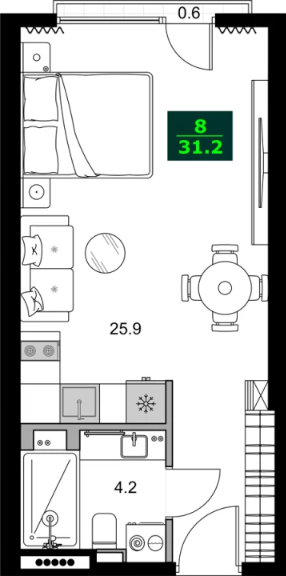 1-bedroom apartment, 31.2 m², 7 floor, SUMMER 365 in Batumi