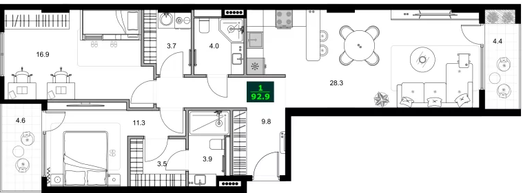 The development offers a range of amenities aimed at enhancing the quality of life for its residents. These include four heated swimming pools, a fitness center, yoga and dance studios, gymnastics halls, and various workout areas around the complex. Safety is a top priority, with 24/7 video surveillance, high-speed OTIS elevators, and comprehensive security measures in place.