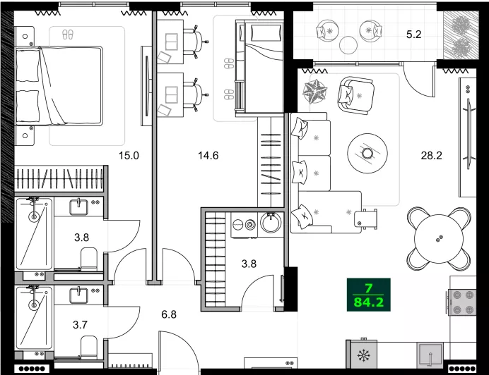 The development offers a range of amenities aimed at enhancing the quality of life for its residents. These include four heated swimming pools, a fitness center, yoga and dance studios, gymnastics halls, and various workout areas around the complex. Safety is a top priority, with 24/7 video surveillance, high-speed OTIS elevators, and comprehensive security measures in place.