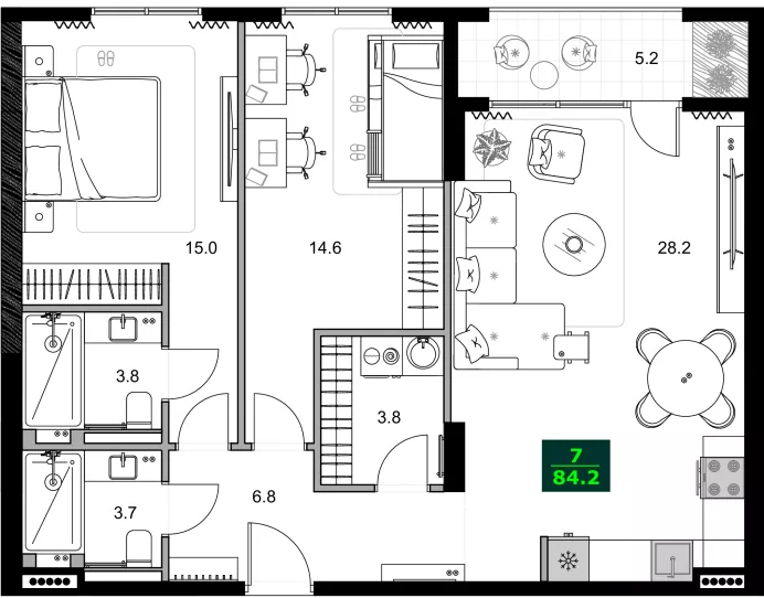 Общая площадь:84.2 м²