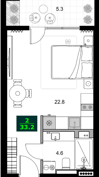 1-bedroom apartment, 33.2 m², 9 floor, SUMMER 365 in Batumi