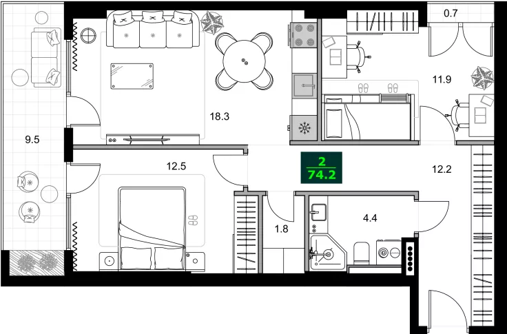 Общая площадь:74.2 м²