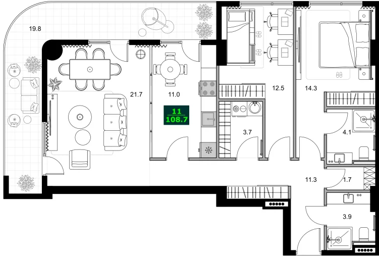 总面积:108.7 m²