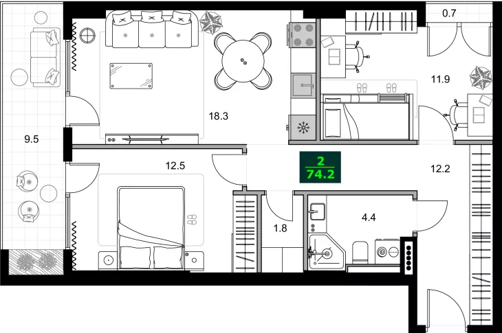 The development offers a range of amenities aimed at enhancing the quality of life for its residents. These include four heated swimming pools, a fitness center, yoga and dance studios, gymnastics halls, and various workout areas around the complex. Safety is a top priority, with 24/7 video surveillance, high-speed OTIS elevators, and comprehensive security measures in place.