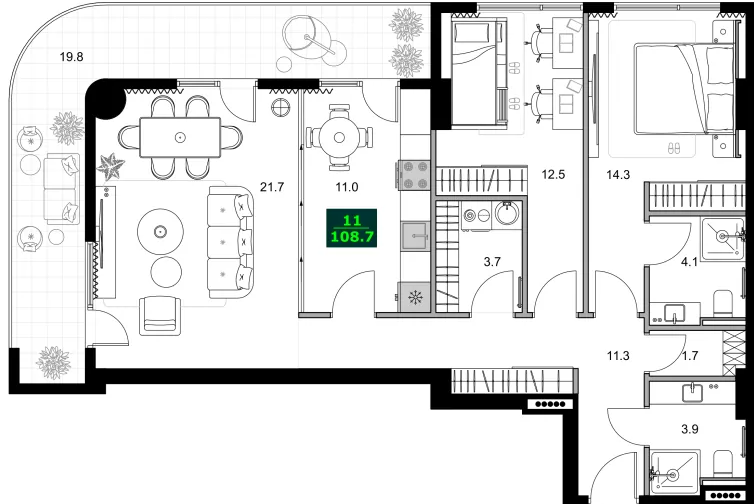 3-bedroom apartment, 108.7 m², 7 floor, SUMMER 365 in Batumi