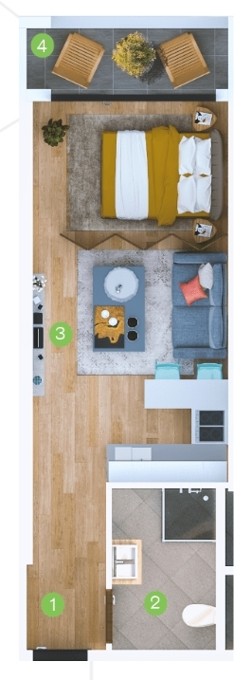 You can buy an apartment in Terrassa Batumi depending on your needs and preferences. If you are looking for a cozy accommodation for one or two people, then a 1-room apartment Terrassa Batumi will suit you. These apartments have a modern design and a spacious layout, providing the coziness and comfort of your home. If you need a larger apartment, then you can buy a 2-room apartment Terrassa Batumi, which will easily accommodate you and your family.