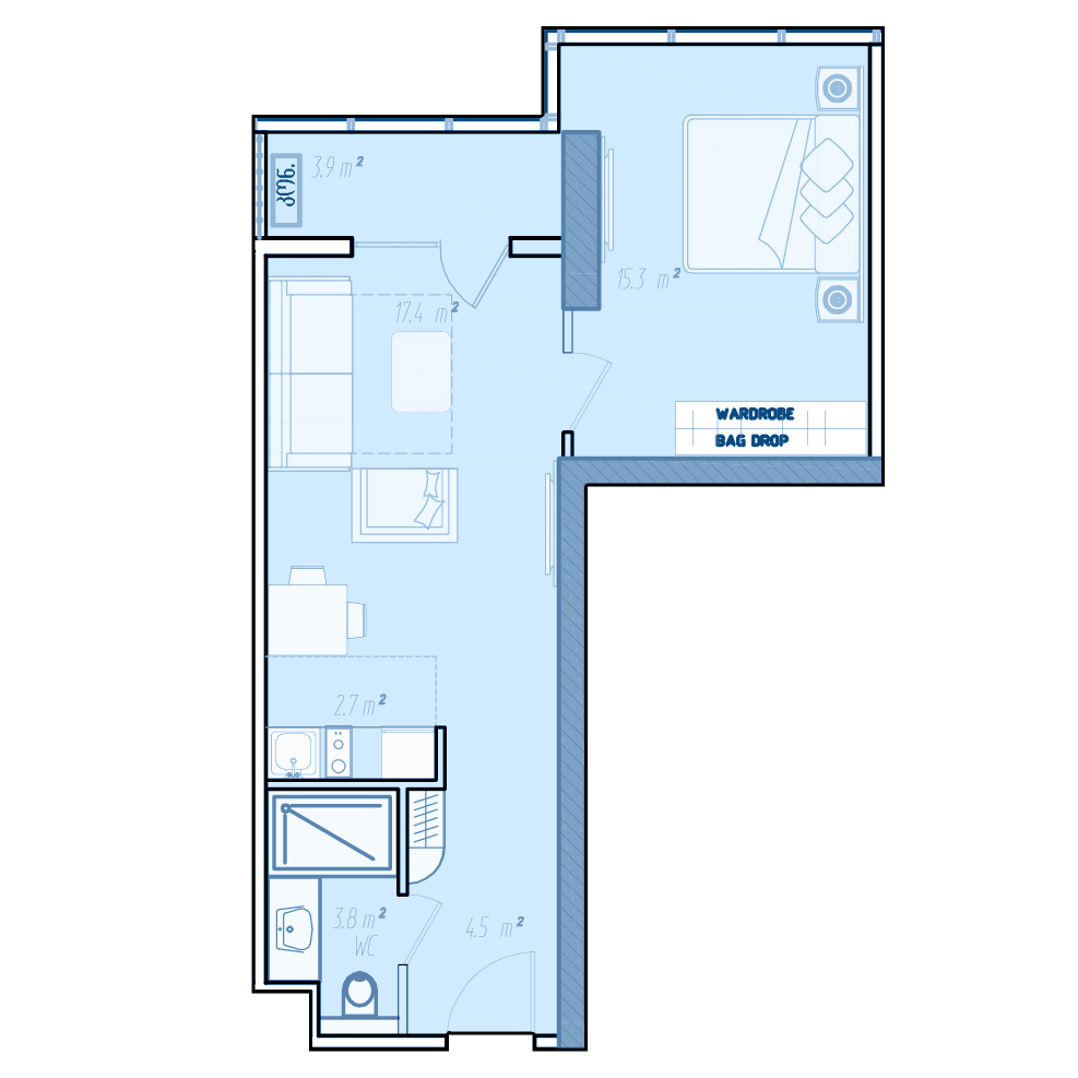 Если определиться с необходимым количеством комнат не удается, то стоит обратить внимание на площадь жилья. В комплексе BlueSky Tower можно купить квартиру площадью от 35 м² до 170 м².