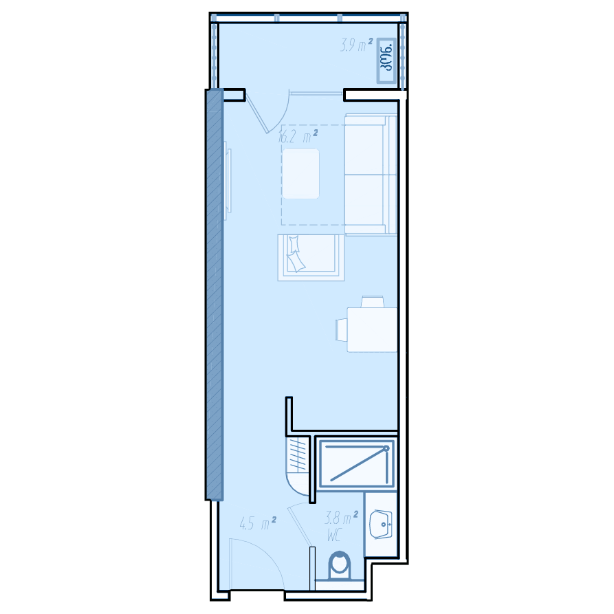 Если определиться с необходимым количеством комнат не удается, то стоит обратить внимание на площадь жилья. В комплексе BlueSky Tower можно купить квартиру площадью от 35 м² до 170 м².
