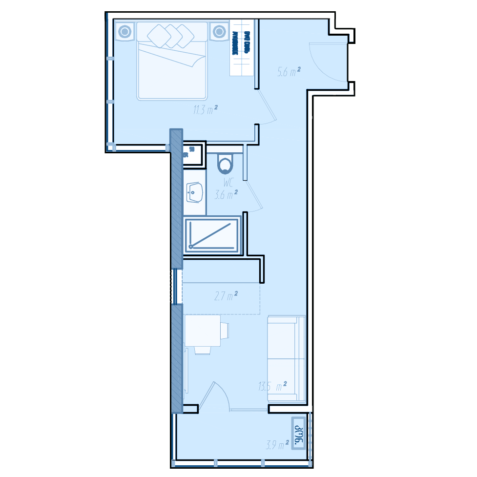 Если определиться с необходимым количеством комнат не удается, то стоит обратить внимание на площадь жилья. В комплексе BlueSky Tower можно купить квартиру площадью от 35 м² до 170 м².