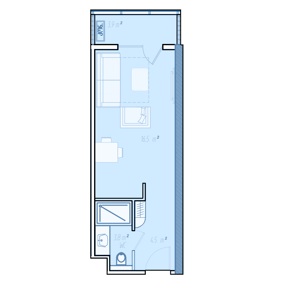 Если определиться с необходимым количеством комнат не удается, то стоит обратить внимание на площадь жилья. В комплексе BlueSky Tower можно купить квартиру площадью от 35 м² до 170 м².