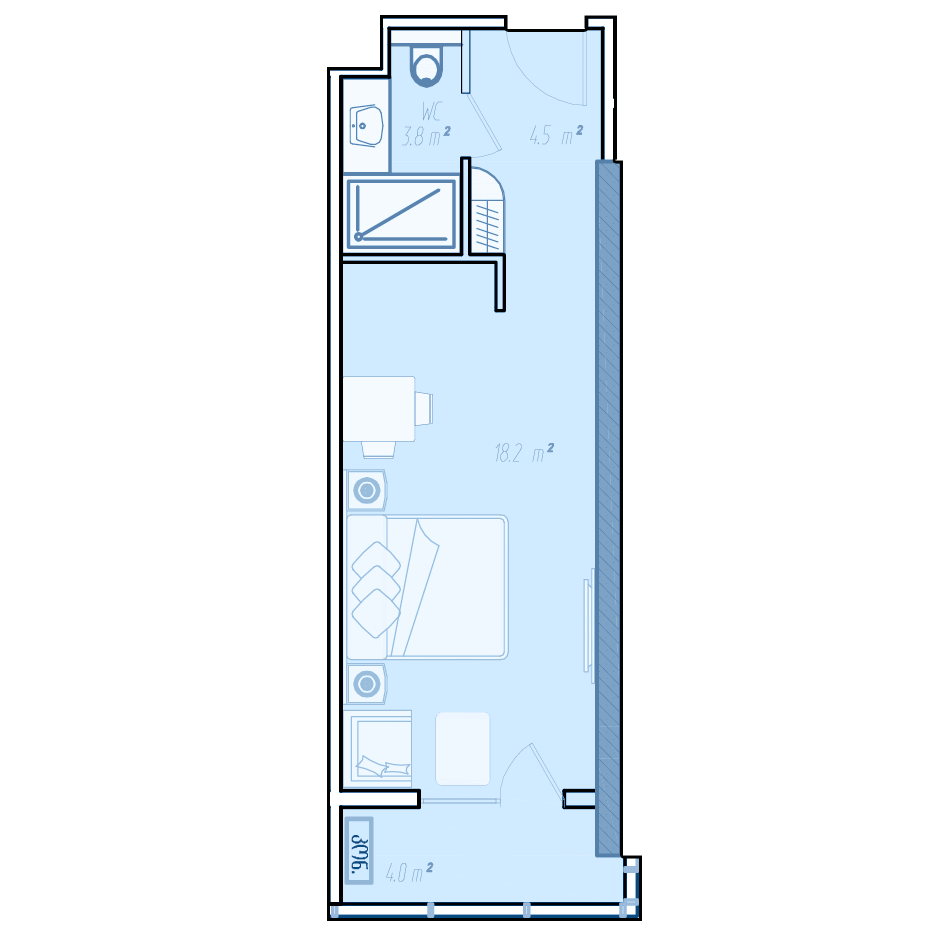 Кроме того, BlueSky Tower предлагает различные варианты расположения квартир в здании. Вы можете выбрать как квартиру с видом на море, так и внутреннюю квартиру с видом на город. Также, под гостиничному типу оформления, в комплексе есть апартаменты.