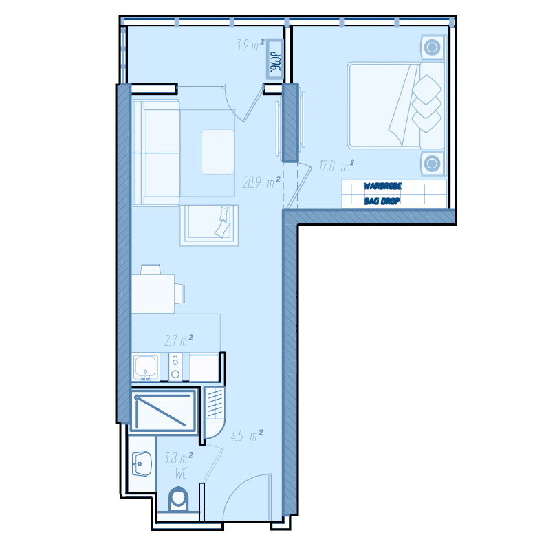 Если определиться с необходимым количеством комнат не удается, то стоит обратить внимание на площадь жилья. В комплексе BlueSky Tower можно купить квартиру площадью от 35 м² до 170 м².
