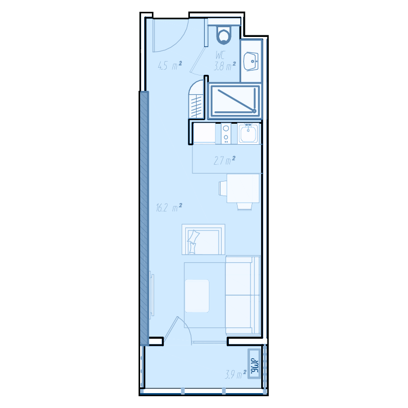 Если определиться с необходимым количеством комнат не удается, то стоит обратить внимание на площадь жилья. В комплексе BlueSky Tower можно купить квартиру площадью от 35 м² до 170 м².