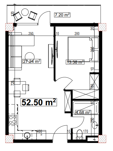 总面积:52.5 m²
