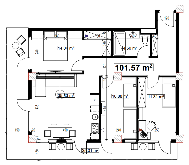 - 从 52 到 101.57 m²