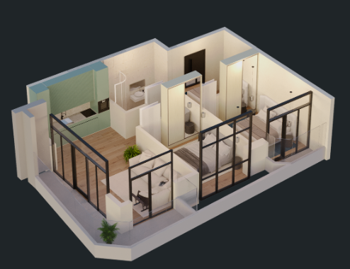 Комплекс отличается современной архитектурой и тщательно продуманными интерьерами, отражающими элегантность и современный стиль. Каждый балкон открывает захватывающий вид на море и горы, создавая особую атмосферу уюта и вдохновения.
