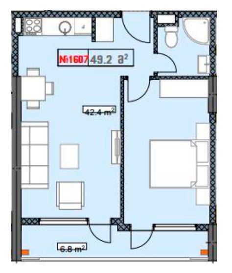 2-комнатная квартира, 49.2 м², 16 этаж в ЖК "New Boulevard Residence"