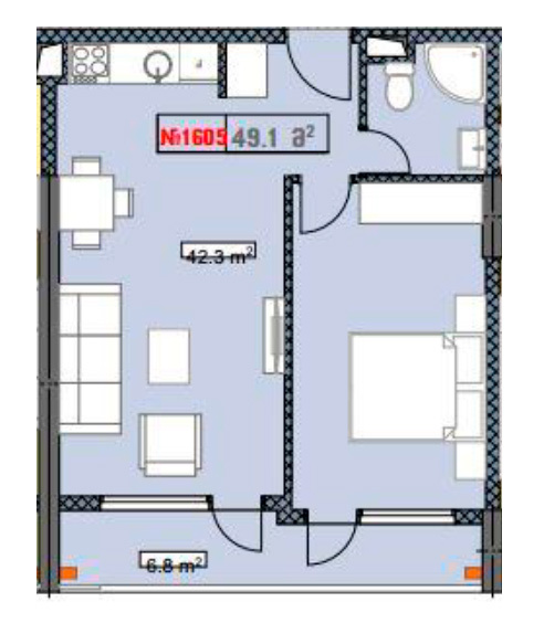 2-комнатная квартира, 49.1 м², 16 этаж в ЖК "New Boulevard Residence"