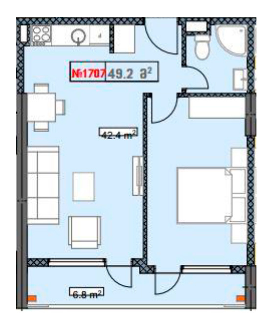2-комнатная квартира, 49.2 м², 18 этаж в ЖК "New Boulevard Residence"