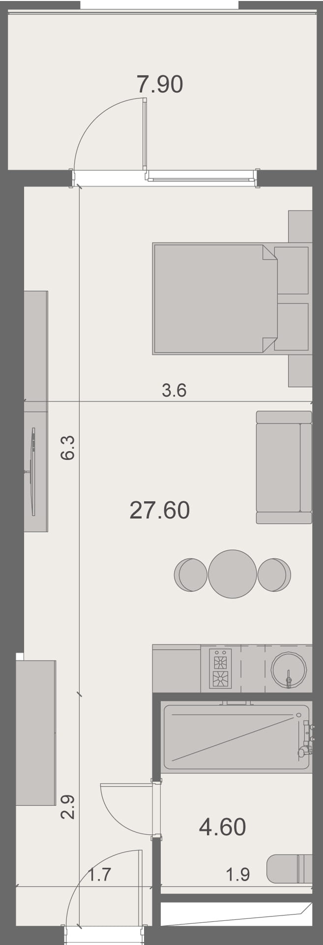 • Студии от 27,7 м²