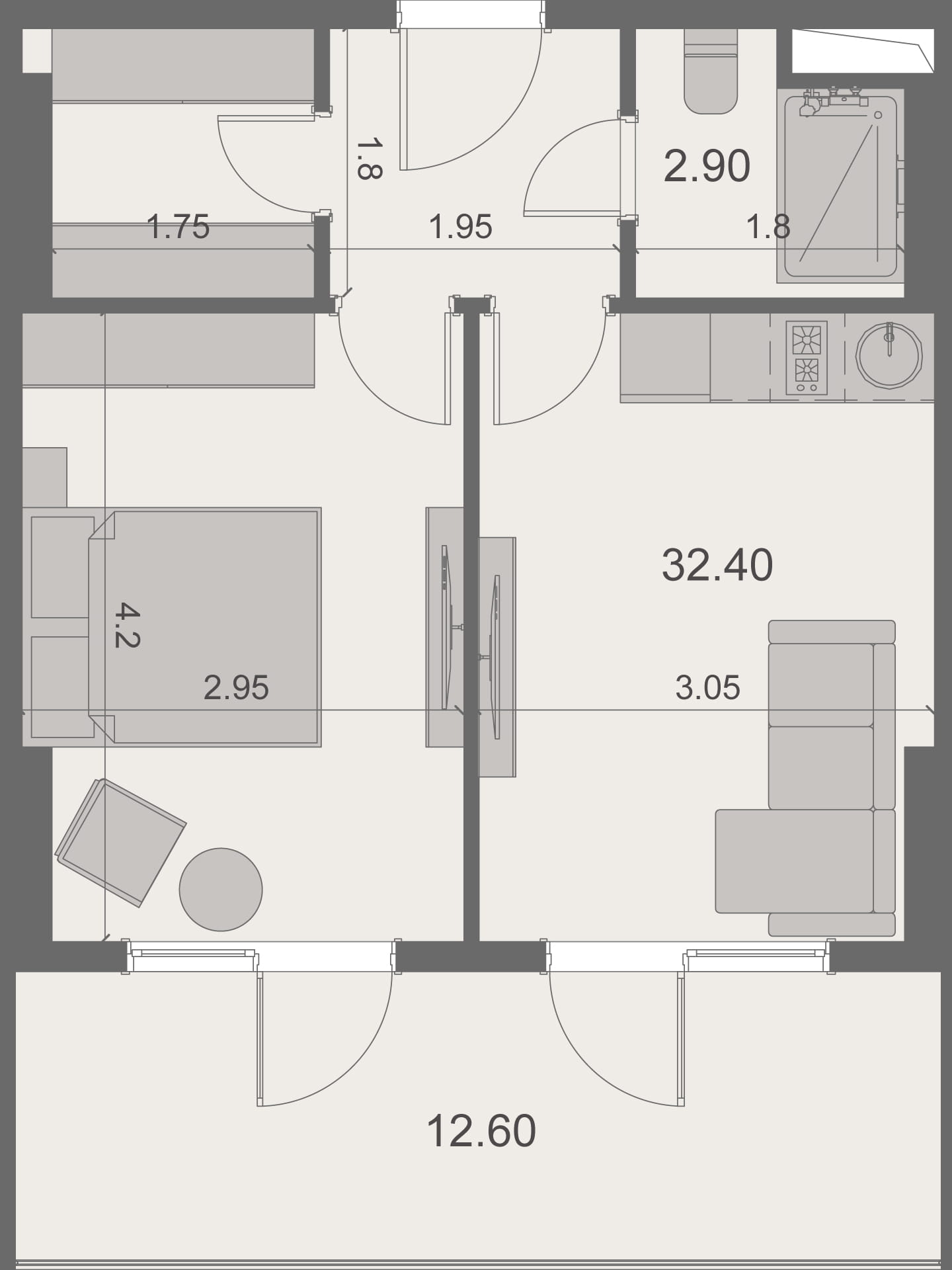 1-room apartments: