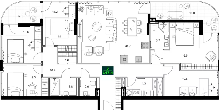 - от 3.5 до 147.4 м²
